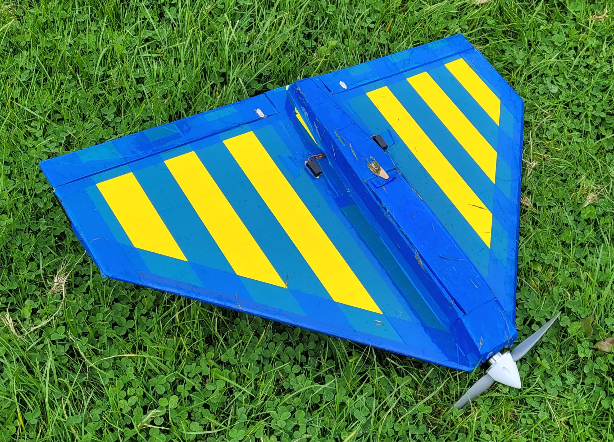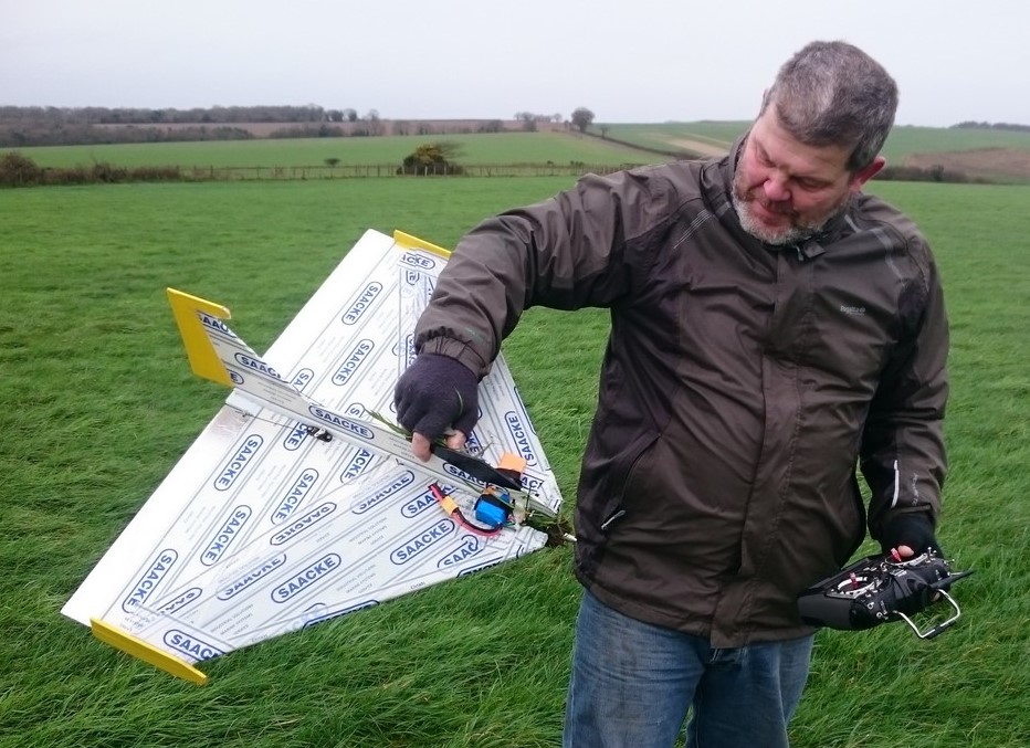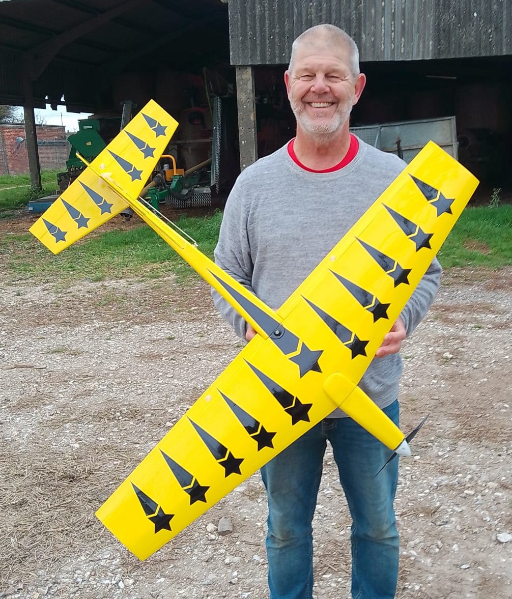 The wings were damaged beyond repair but the fuselage was too good to simply chuck in the bin so Bob modified it slightly and fitted the wings from a one metre span electric powered glider that he’d built during lockdown. He’s named the recycled combo TasLock.
