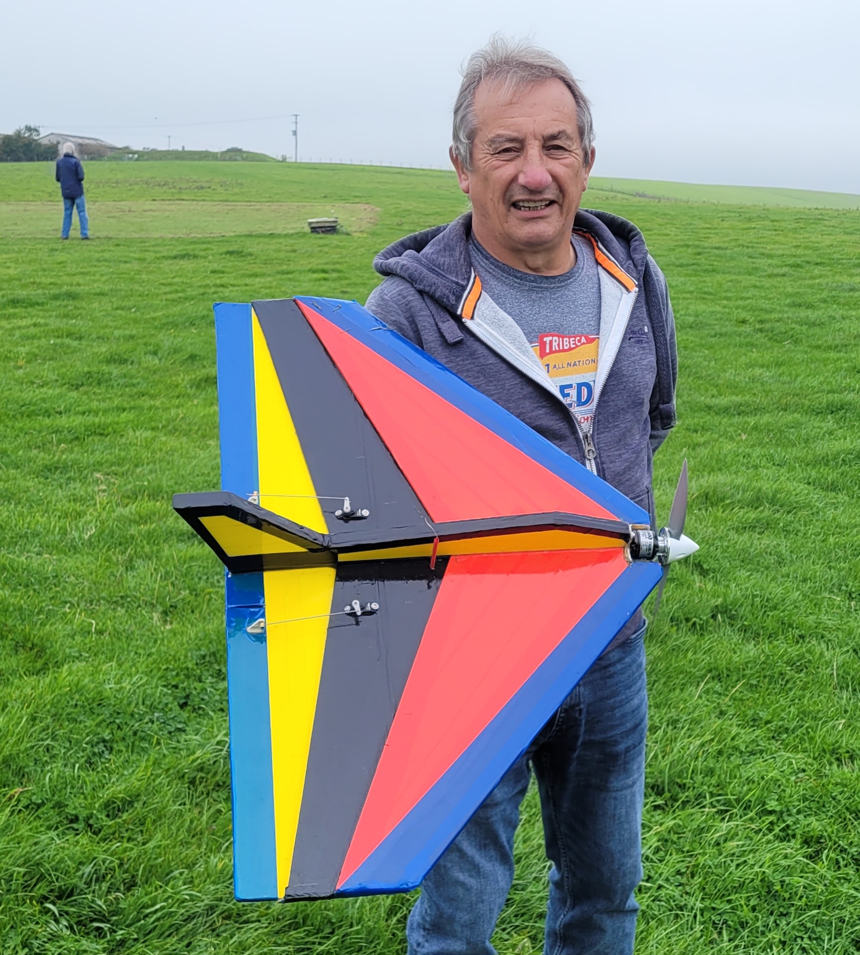 The model is a later version of one originally built by 1066 for the club’s Delta competition way back in 2015 when club members built deltas of their own design but they had to have a flat plate wing of a specified size and outline. They then competed in a series of tasks over the following few months, great fun. Some flew better than others but they all flew.