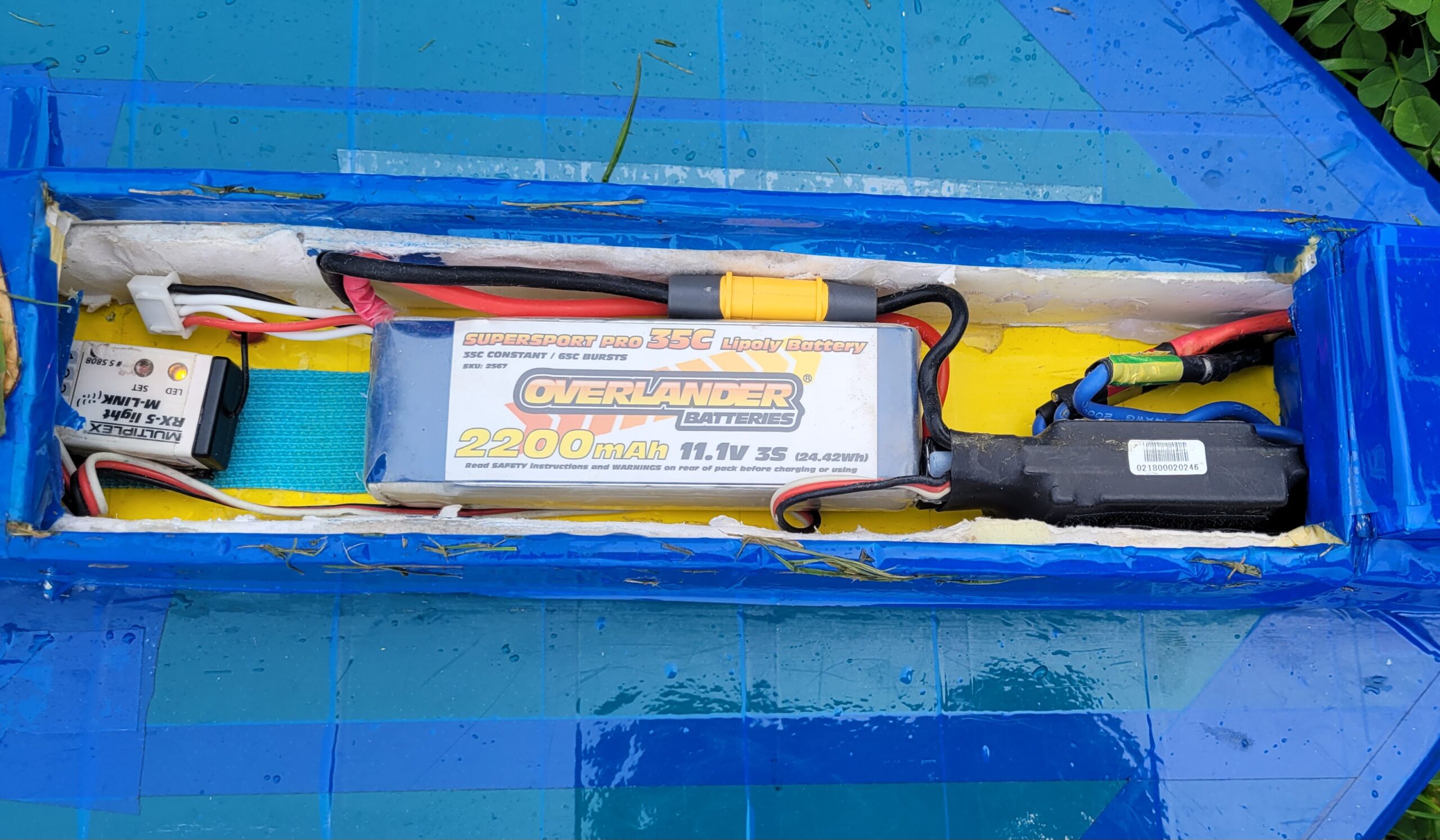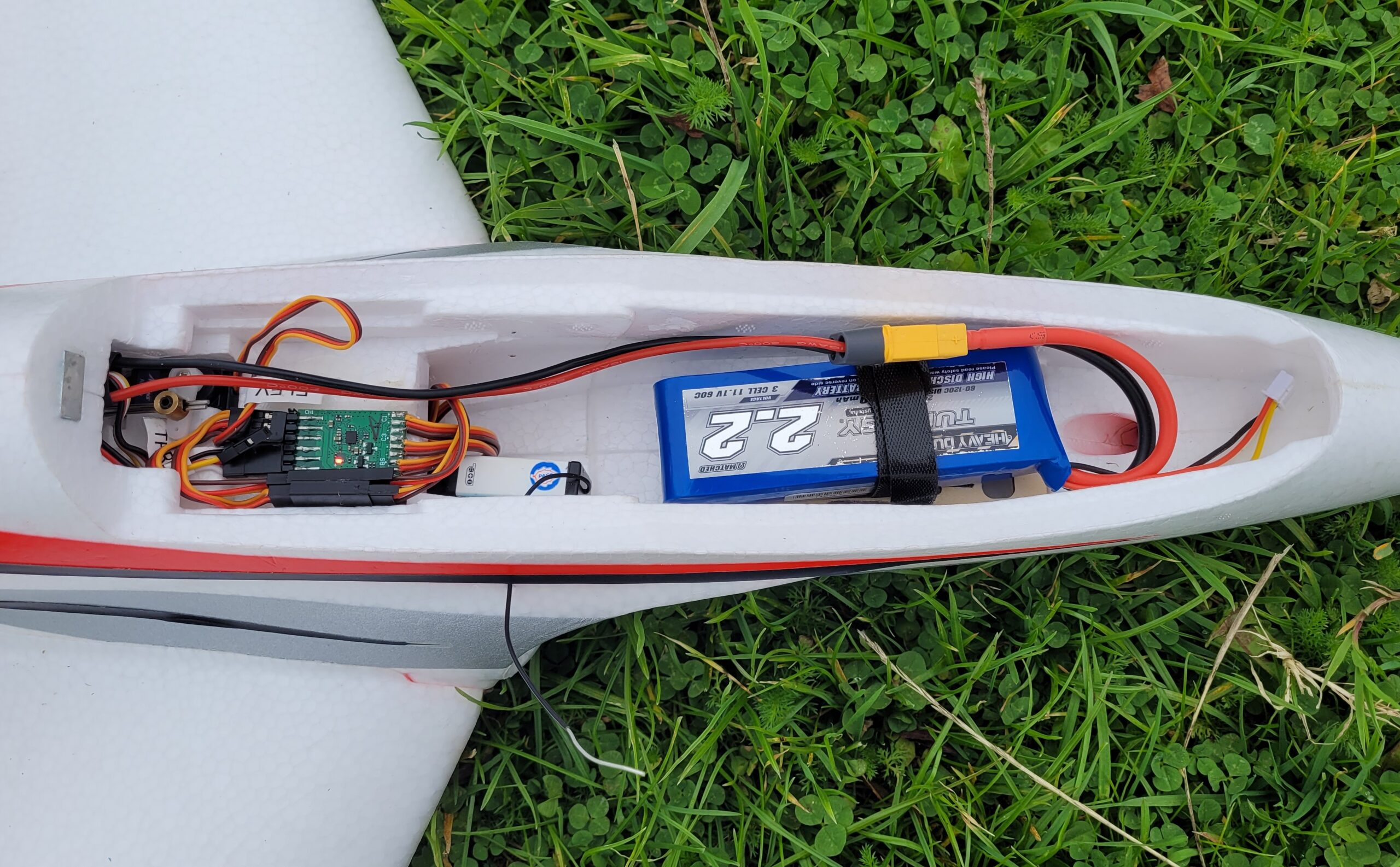 The MX2 flew well enough but I didn’t really enjoy flying it so I put it away for a while. But in August I felt I should give it another go and, knowing that others had sometimes used 2200mAh packs I decided to try those. But fitting a larger pack was tricky, especially as it would need to be further back in the fuselage to maintain the correct centre of gravity.