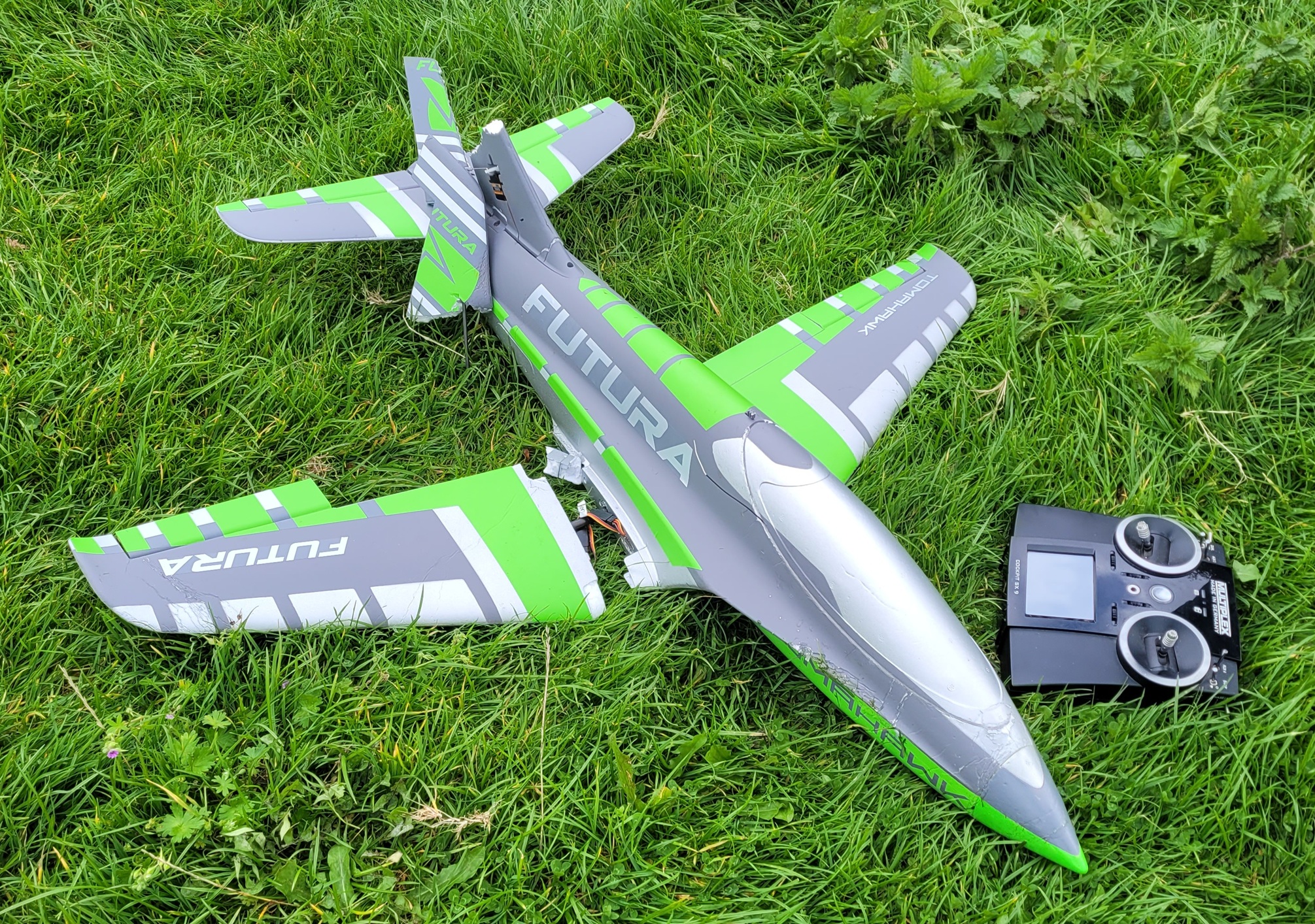 At one flying session in October I was flying my FMS Futura but was struggling to take-off with the slightly long grass wet with autumn dew and eventually I snapped the nose-leg.