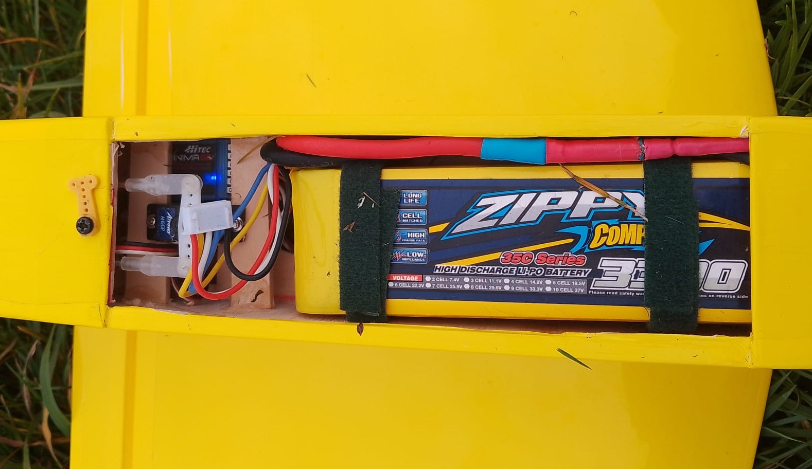 Then I realised the fuselage is really deep at that point so the pack would fit vertically, and after a few minutes of foam hacking I’d solved the problem! I added a small piece of thin ply to keep the wires within the fuselage width, without that it was tricky putting the canopy/top section on. Oddly I find it nicer to fly with the extra weight and I’m enjoying it much more. There’s a short piece in the video proving that I don’t really do 3D!