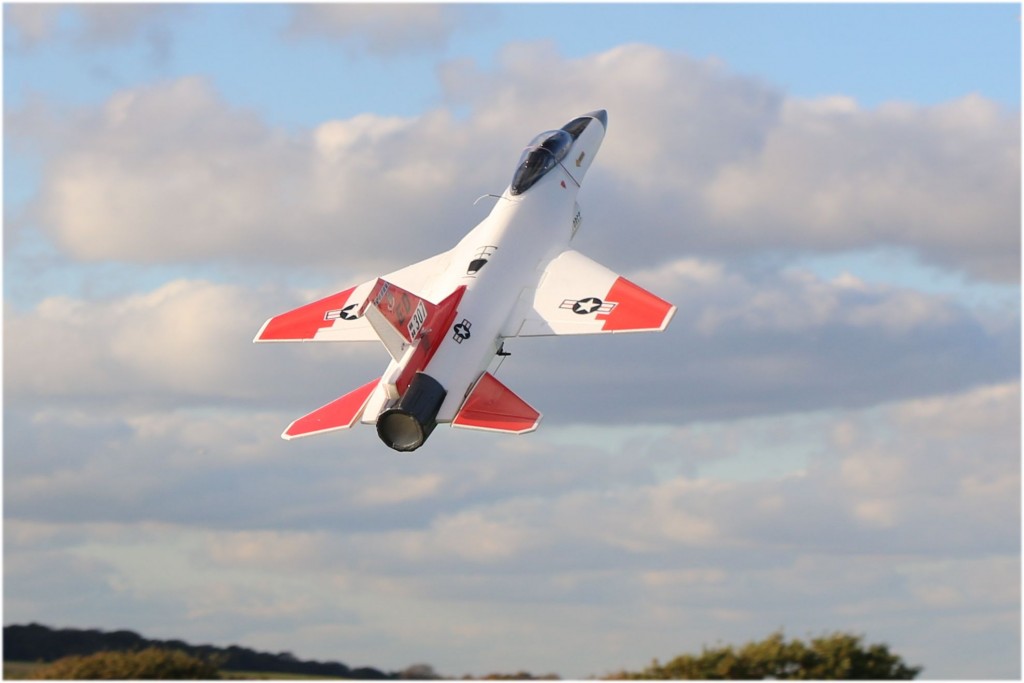 Next time out the F-16 flew beautifully, a great improvement and fully under control. Dougal filmed the first three flights goes so you can see them in this month’s video. At the moment I don’t have any footage of it flying with the ailerons connected, hopefully I can include some next month. Well done Woody, after a few hiccups Thunderbirds Are Go! Yes, I know that expression was the puppet Thunderbirds not the aerobatic team but…!